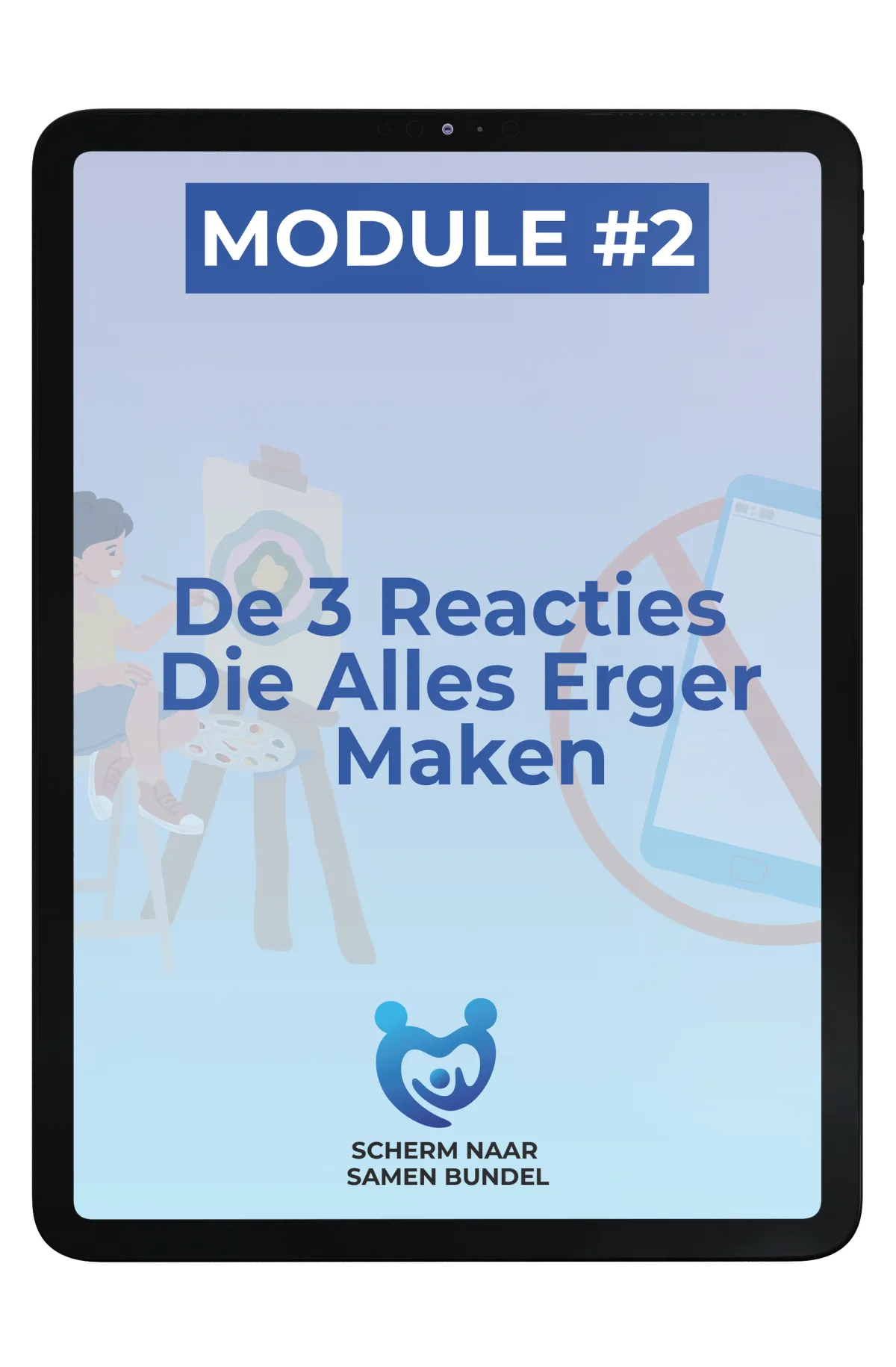 Wil je structureel de schermtijd van je kind verminderen? In deze module krijg je een concreet 30-dagenplan waarmee je stap voor stap de afhankelijkheid van schermen verlaagt, zonder direct alles te verbieden of te forceren.